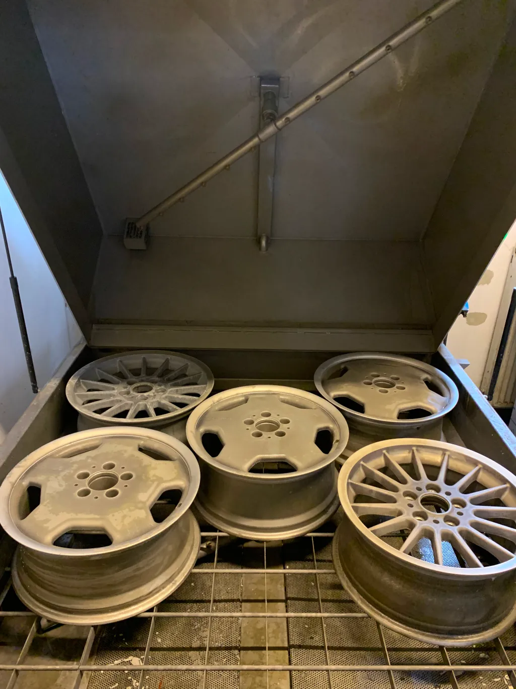 Zur Vorbehandlung der Oberfläche gehört neben einer gründlichen chemischen Entlackung der Felge auch die Suche nach Beschädigungen, die eine Weiterverwendung unmöglich machen. Sind die Räder in Ordnung, werden sie glasperlgestrahlt und mit einem Korrosionsschutz versehen. Alle Plan- und Montageflächen werden abgedeckt, um eine ordnungsgemäße Remontage zu gewährleisten.